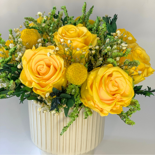 Nuestros arreglos de flores preservadas son creados al momento de tu compra, cuidando cada detalle para que disfrutes su belleza por mucho tiempo.
