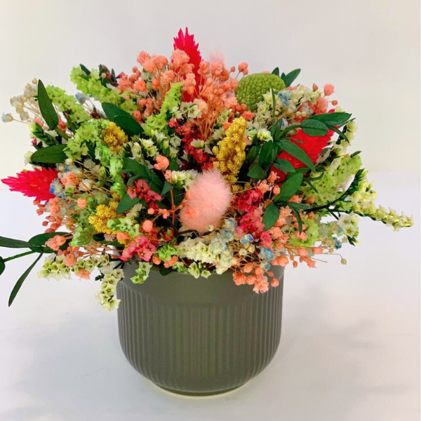 Este arreglo de flores preservadas trae frescura y color que nunca se marchita. ¡Dale a ese momento o rincón especial un toque de alegría y estilo que cautiva!